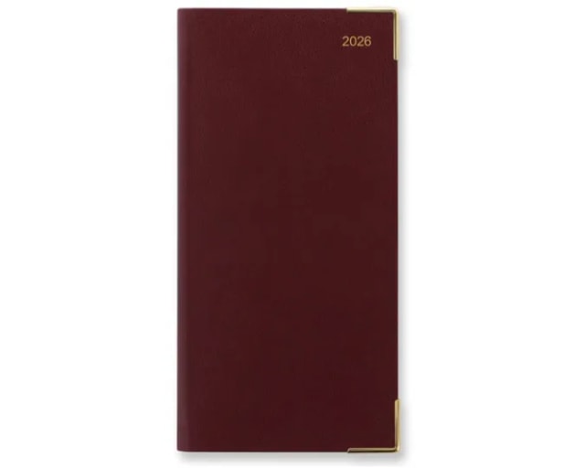 Complete your goals with this elegant faux-leather Slim size diary. Beautifully accented with matching gold corners and gilt foiled paper edges. Week to view diary layout with appointment times, notes and planner pages.