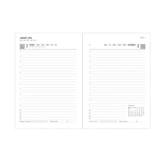- mid year day per page diary with appointment times (31/12/25 - 02/01/27)