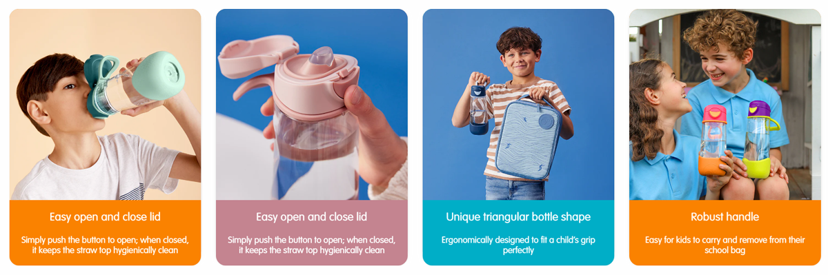 Perfect for active kids on the go, the 450mL Sport Spout Bottle offers no-fuss, easy-flow drinking in our unique ergonomic triangle bottle.